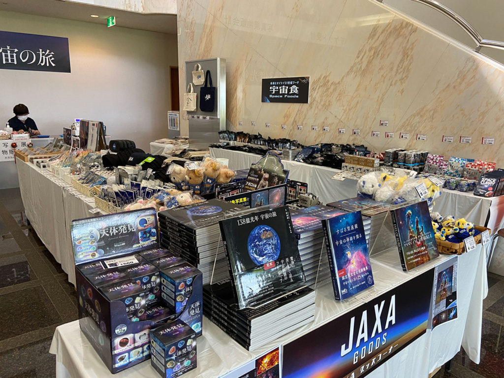 館内ロビーでは、関連写真集や宇宙グッズやカプセルトイ、宇宙食など楽しい商品をたくさんご用意。お買い物もお楽しみいただけます。