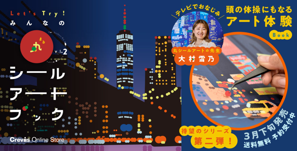<大村雪乃シールブック『Let’s Try! みんなの丸シールアートブック Vol.2』amazon、楽天、Crevis Online Store予約ページ>